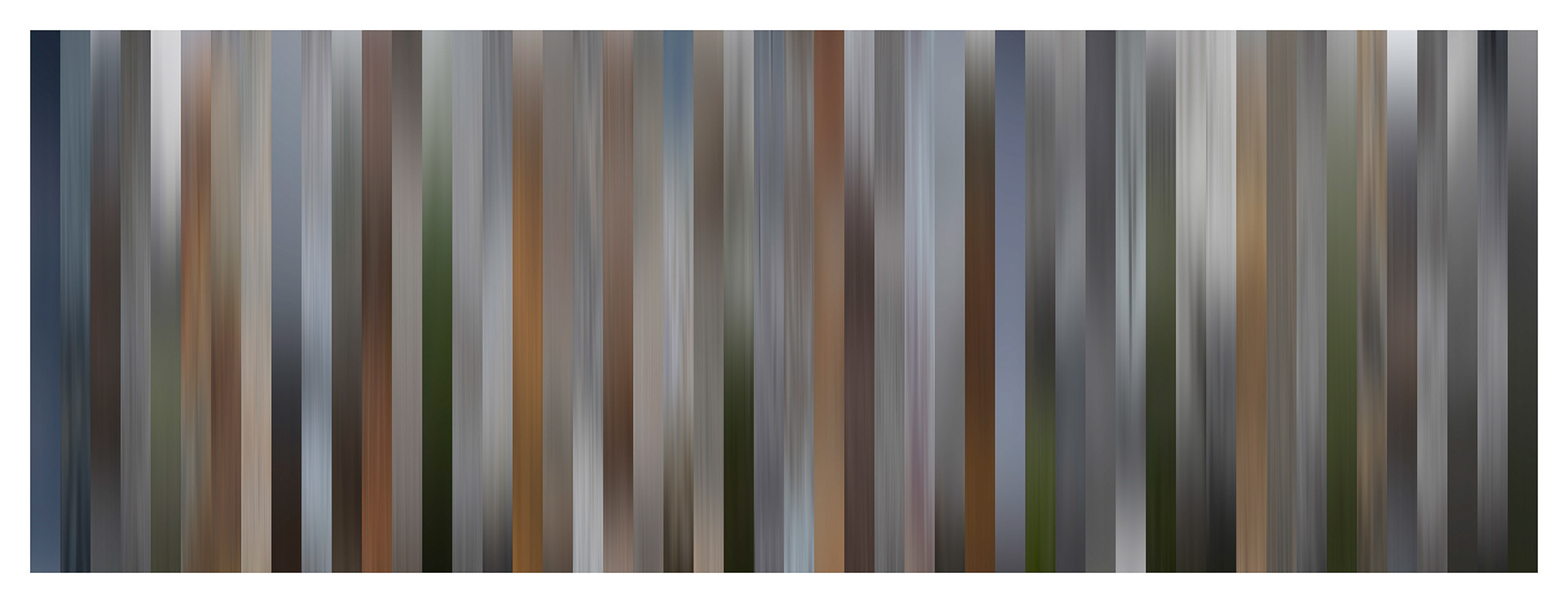 Does every location have a unique color palette? That was the question I set out to explore in my new body of work — "Color of Place". These panoramas include blurred slices from 50 images, stitched together to create a panoramic color palette representing a location. Click here to read an interview about the project.